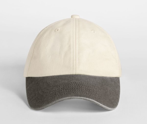 Tour de tête 100% coton sergé naturel. Visière 100% coton lourd délavé.