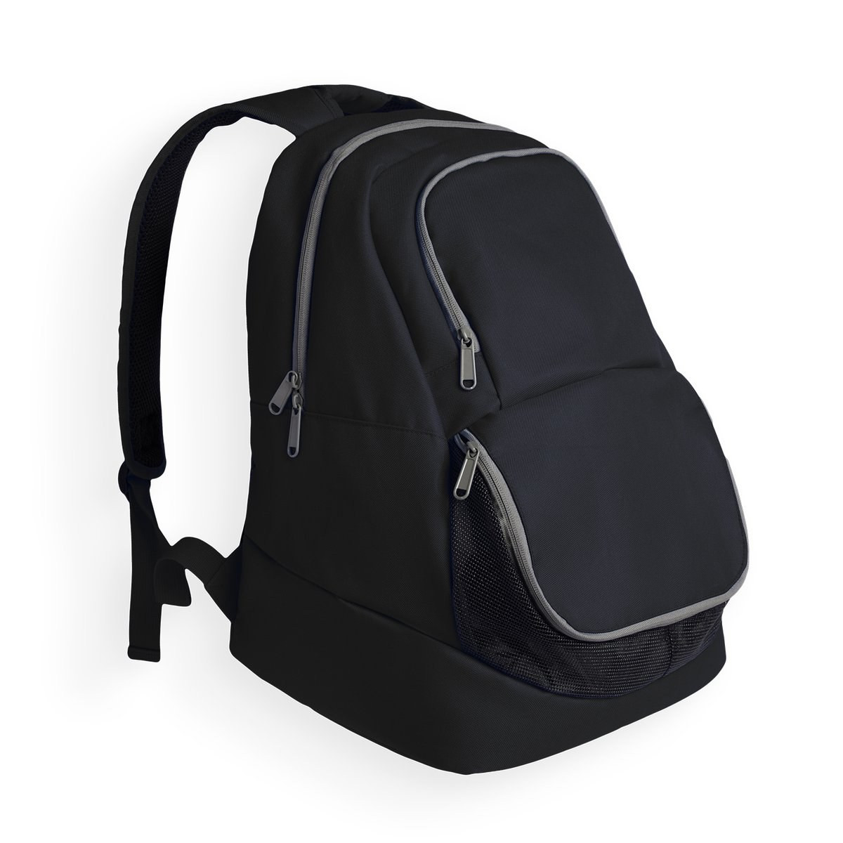 Sac à dos sportif avec grand compartiment principal avec fermeture éclair. Petite poche frontale zippée. Compartiment inférieur zippé pour les chaussures. Zips contrastés. Bretelles réglables.