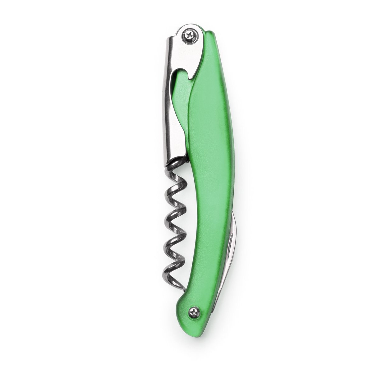 Tire-bouchon classique avec accessoires en acier inox. Cutter et décapsuleur inclus. Emballé dans une boîte individuelle.