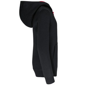 Tout comme les modèles pour adultes, il est ouvert sur le devant à l'aide d'une fermeture zippée et embarque une capuche doublée contrastée et des poches kangourou qui soulignent son style urbain.