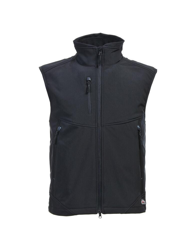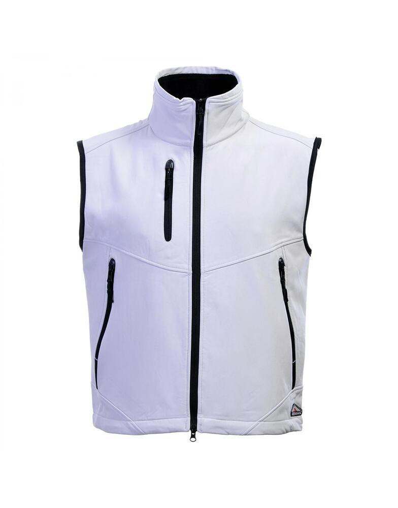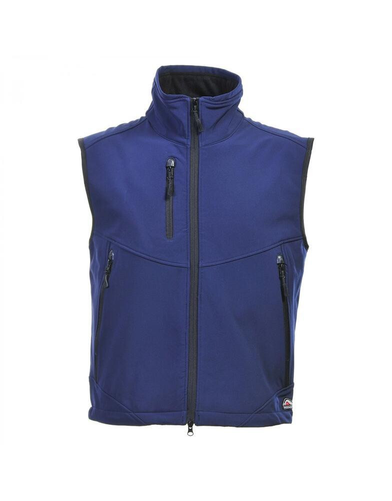 Bodywarmer softshell 94 % polyester 6 % elasthanne. 3 Couches contrecollées sur laine micro-polaire avec membrane respirante et imperméable 5000/3000. Zip central double sens avec rabat total intérieur. 2 très grandes poches mains zippées. 1 poche poitrine anti-coeur. Cordon de serrage à la taille. Dos allongé.