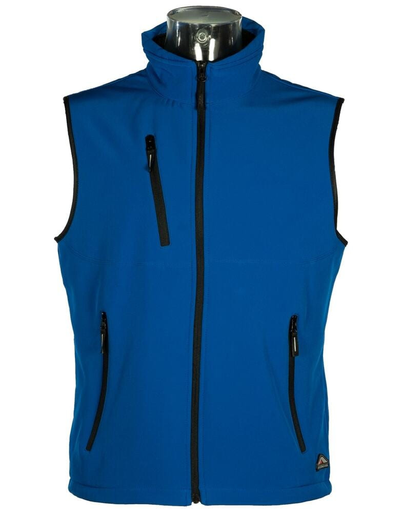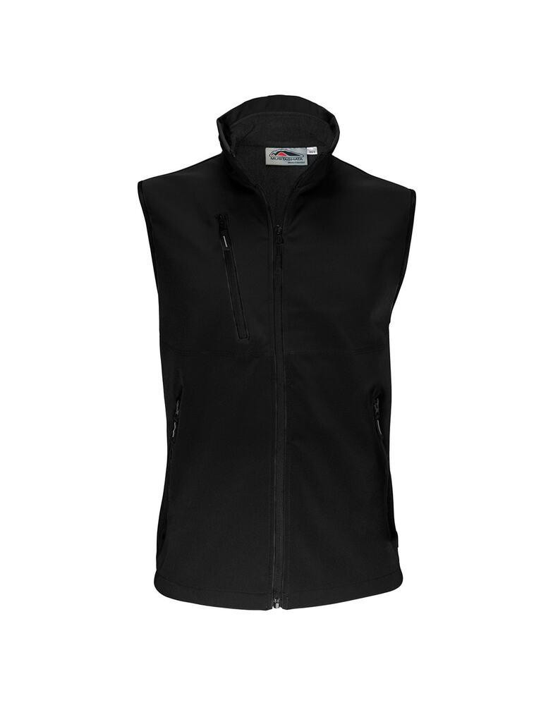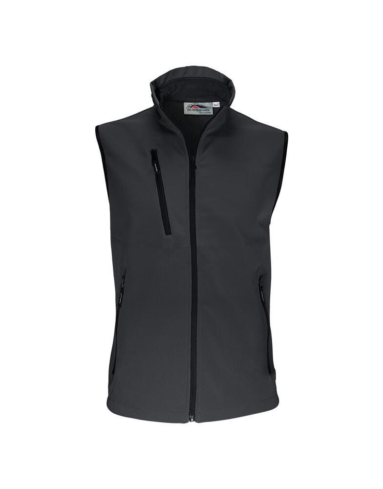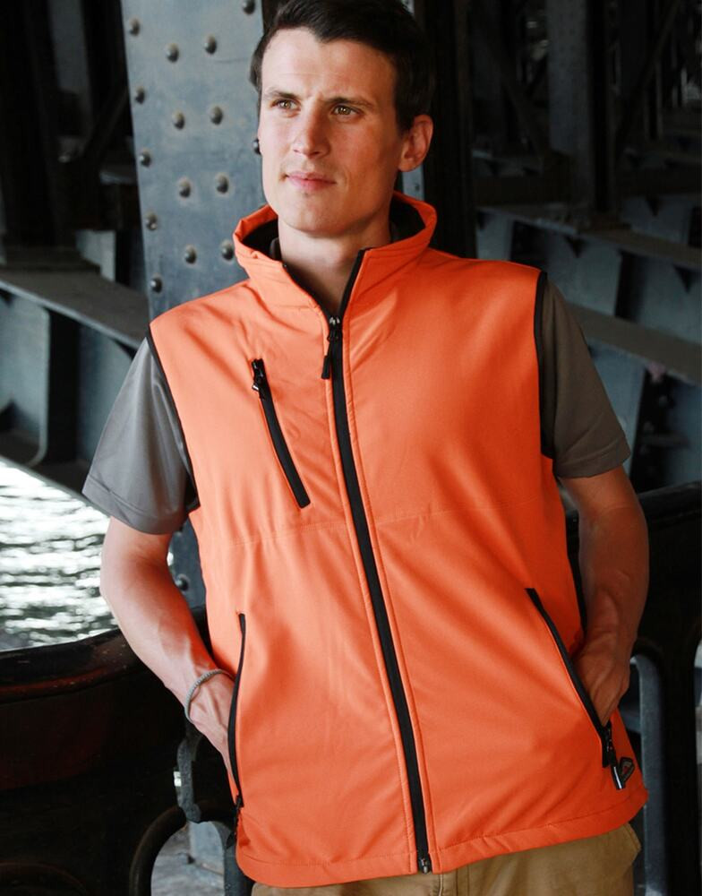Bodywarmer Softshell 2 Couches. Respirant et déperlant .94% Polyester / 6% Elasthanne. Polaire Contrecollée. Doublure intérieure par dessus les poches. 2 poches main zippées. 1 poche poitrine zippée.