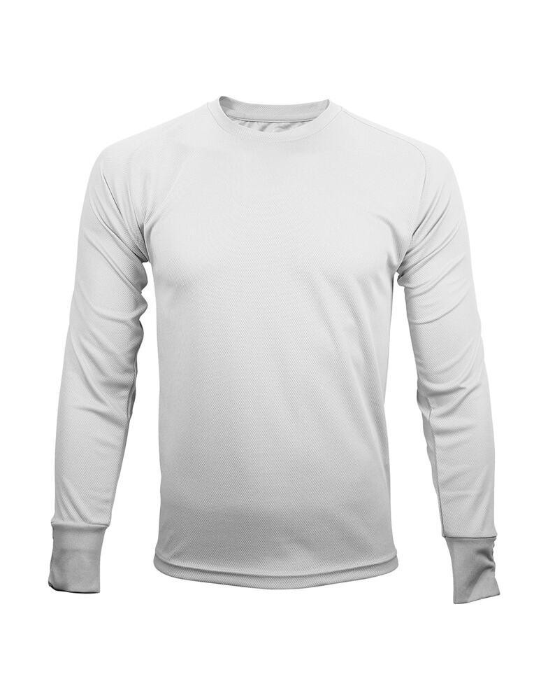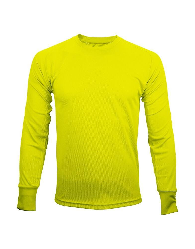 100% polyester. Technologie Active Fit Systèm : circulation de l'air, évacuation de la transpiration. Manches longues raglan, Col rond, Sport Fit, poignets bord-côte avec élasthanne et passage du pouce.