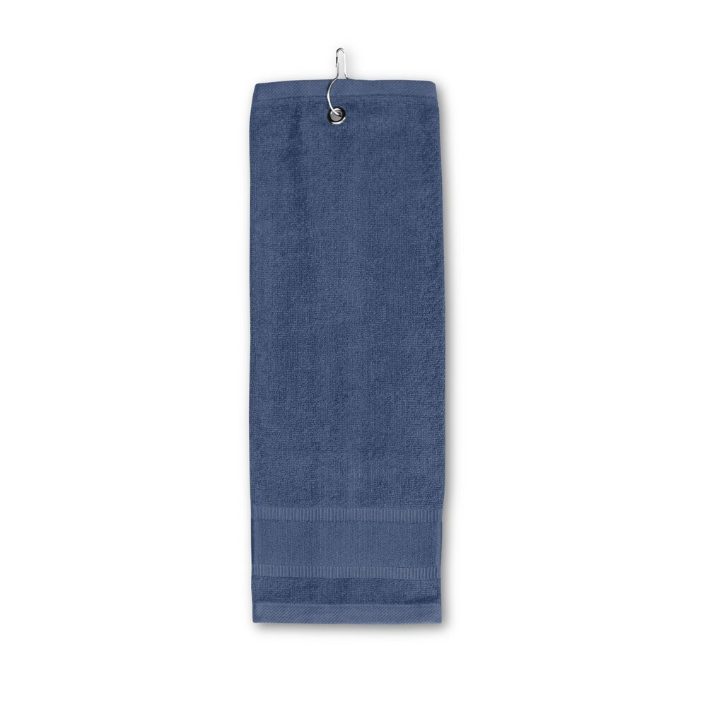 Serviette multifonctions en coton (430 g/m²) avec crochet métallique. Douce pour la peau et très absorbante, elle est idéale pour vous accompagner lors de la pratique sportive comme le golf ou pour une utilisation en cuisine. Pratique à suspendre grâce à son crochet facile à utiliser. Fabriquée en Europe