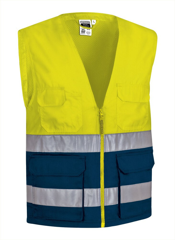 Gilet léger haute visibilité multi poches. Fabriqué en tissu sergé polyester au toucher coton, doux, résistant et durable, avec maille intérieure qui favorise la ventilation, comprend deux bandes rétro-réfléchissantes cousues sur le torse et le dos qui augmentent la visibilité des utilisateurs. Vêtement certifié EPI de Catégorie II de haute visibilité sur la base des normes 13688 et 20471, classe 1.Deux poches frontales avec soufflets, deux sur poitrine, toutes avec rabats, deux poches latérales et une intérieure, pour tout avoir à portée de main et favoriser le marquage, compartiment stylo.Méthodes de marquage idéales : sérigraphie, broderie, transfert, patchs.Idéal comme vêtement de travail.